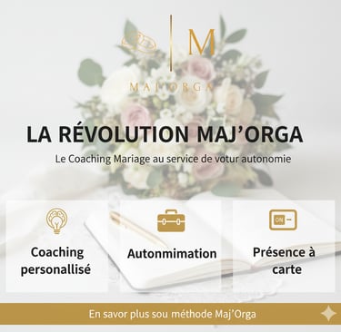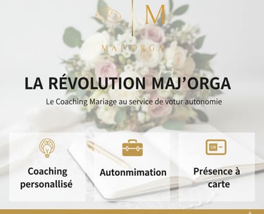 Chez Maj'Orga, nous transformons la préparation du mariage en une aventure joyeuse et autonome.